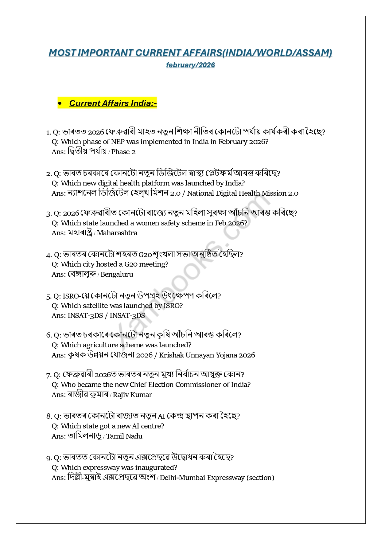 Current Affairs – February 2026 [PDF]